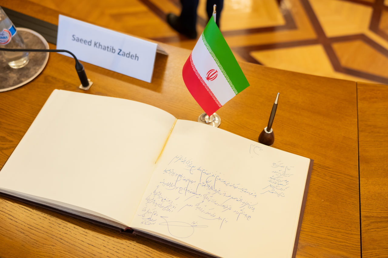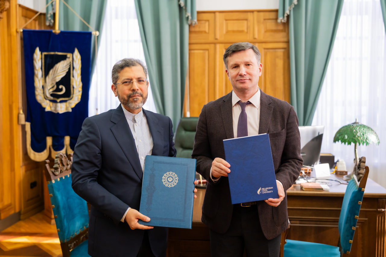 گفتنی است پیش از آغاز مراسم، ایشان به همراه سفیر محترم کشورمان و هیئت همراه، با آقای آندری کارول رئیس دانشگاه دولتی بلاروس ملاقات و در خصوص راههای توسعه روابط و همکاری‌ها در حوزه دانشگاهی گفتگو و تبادل نظر کردند. در ادامه این ملاقات، یادداشت تفاهم همکاری مرکز مطالعات سیاسی و بین المللی وزارت امور خارجه ایران و دانشگاه دولتی بلاروس به امضا ایشان و اقای آندری کارول رسید.