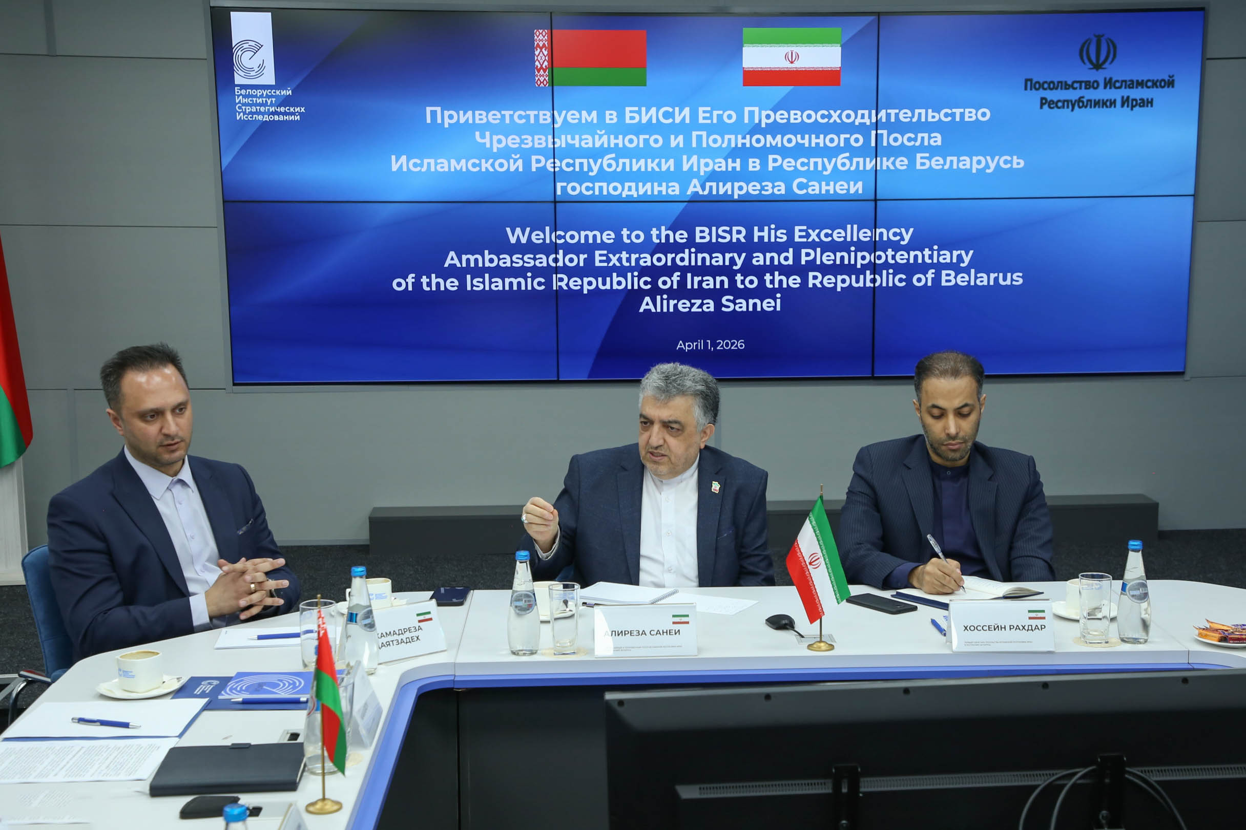 سفیر کشورمان با اشاره به اهداف آمریکا و رژیم صهیونیستی از این تجاوز بر اشتباه راهبردی آنها در محاسبتشان که ناشی از عدم شناخت آنها از فرهنگ، تاریخ ، تمدن و باورهای مردم ایران است اشاره و بر مقاومت ملت ایران و تسلیم ناپذیری آنها در برابر تجاوز خارجی تاکید نمودند. ایشان همچنین در ادامه  به تشریح پیامدها، آثار و نتایج این تجاوز بر اقتصاد منطقه و جهانی پرداختند و تاکید نمودند کشورما مصمم است که چرخه و سیکل معیوب مذاکره، جنگ، آتش بس را برای همیشه متوقف کند. شایان ذکر است موسسه تحقیقات استراتژیک بلاروس (BISR) یک نهاد مشورتی است که مستقیما زیر نظر ریاست جمهور بلاروس فعالیت می‌کند و وظیفه ارائه تحلیل های دقیق برای تصمیم گیری‌های کلان سیاسی و امنیتی را برعهده دارد.
