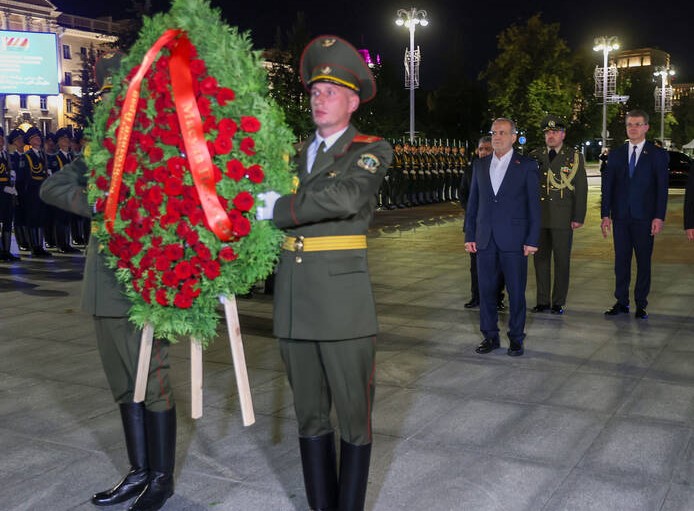 Вечером во вторник 18 августа по прибытии в Беларусь уважаемый Президент нашей страны г-н Пезешкиан посетил монумент Победы в Минске.