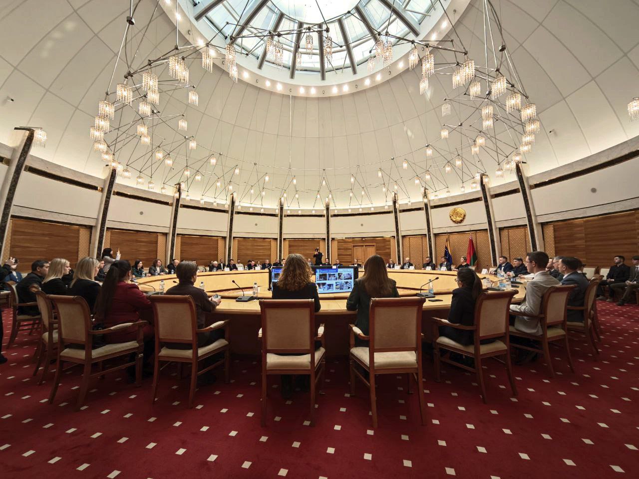 Его превосходительство господин Алиреза Санеи, уважаемый посол нашей страны в Республике Беларусь, во вторник, 3 февраля 2026 года, принял участие в мероприятии, посвящённом 29-й годовщине установления дипломатических отношений между Венесуэлой и Беларусью, под названием «Диалог в знак солидарности с Венесуэлой», которое состоялось в Национальной библиотеке Беларуси, и выступил с речью. В своей речи он изложил позиции нашей страны относительно последних региональных и международных событий, в том числе недавних событий в Венесуэле.