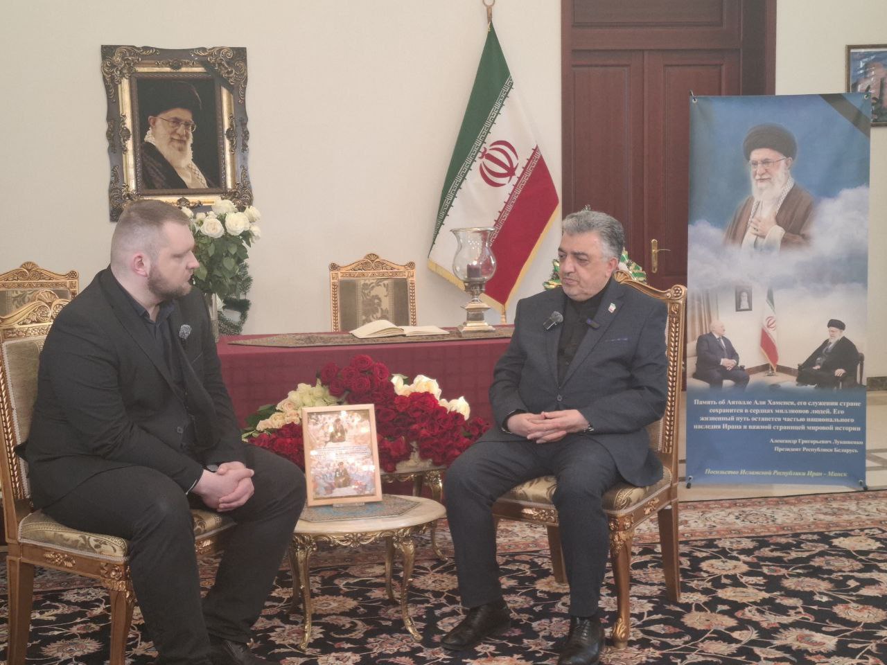 В четверг, 5 марта 2026 года, Чрезвычайный и Полномочный Посол нашей страны Е. П. г-н Алиреза Санеи дал интервью белорусскому телеканалу СТВ. Интервью было проведено с ведущим данного телеканала г-ном Григорием Азарёнком.